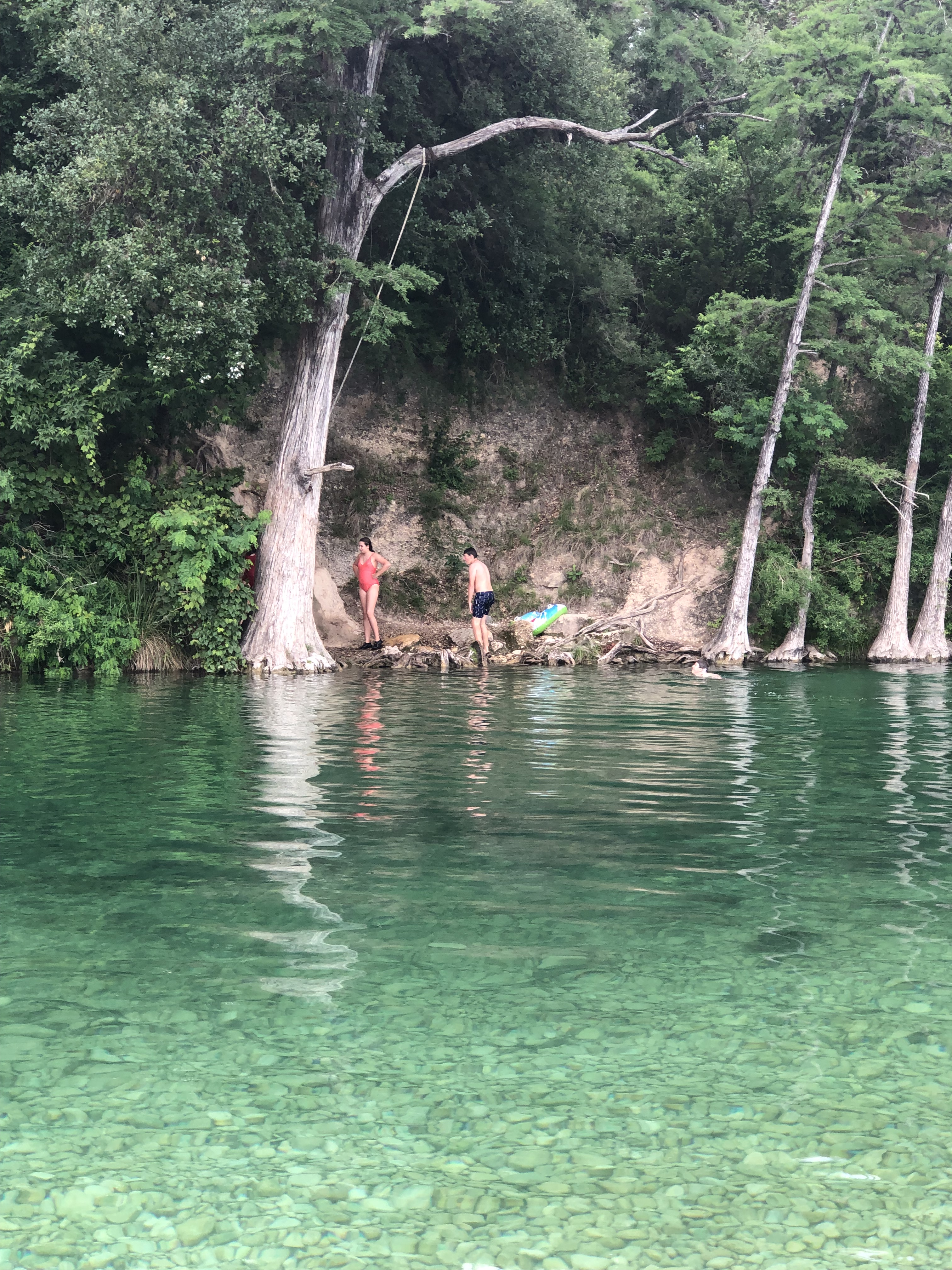 We hopped in our tubes, tied 8 of us together, and strapped on our super sexy helmets equipped with mounted flashlights. Rooster pulled us through the caves, sometimes swimming because it was too deep to touch, and pointed out all the cool formations. I’ll have to admit I felt so lazy just sitting there letting him haul us around. Oh well, this is vacation! The cave was beautiful – pitch black, except for the couple of places where holes allowed sunlight through – I kept forgetting it wasn’t night time! Then we had some free time to swim at the end before it was time to get back on the bus.