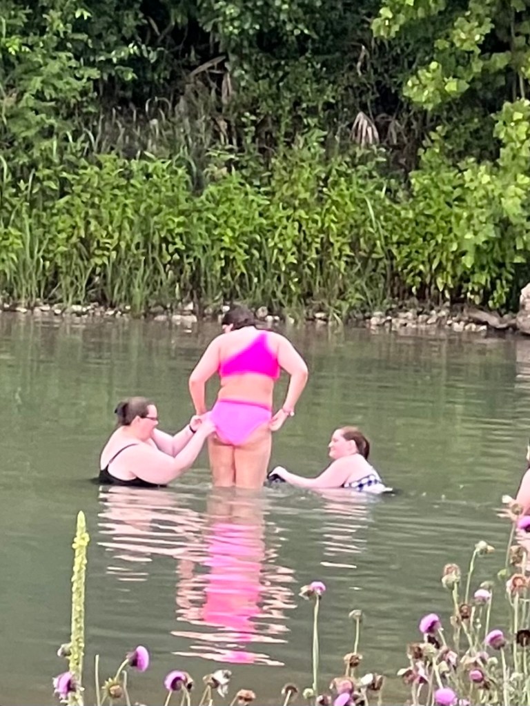 I’ll close this out with a pic of Kevin rockin’ the pink back pack for our excursions & 2 more hair shots to make you smile. It was a battle not worth fighting – lol!